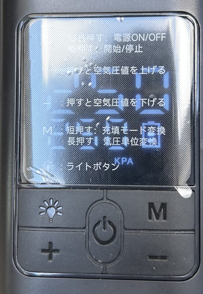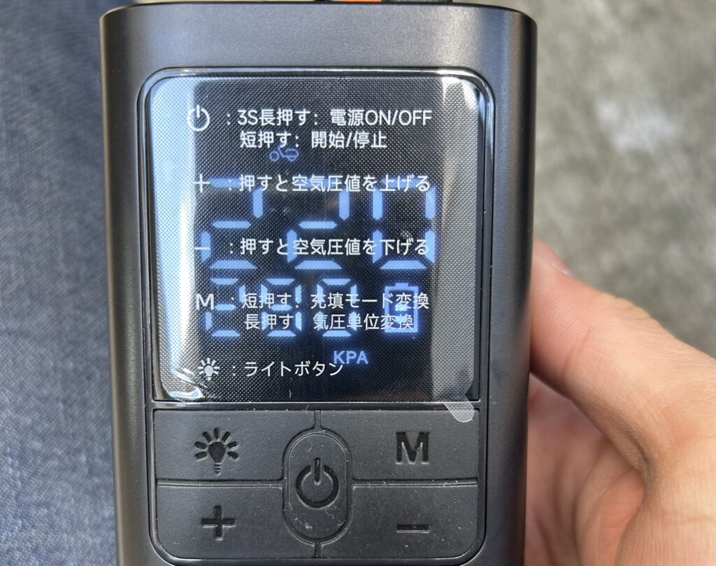③真ん中の電源ボタンを押せば指定空気圧まで自動で入り自動で止まります(便利)